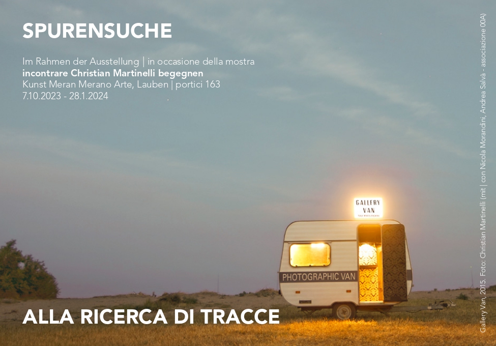 Mit der Workshop-Reihe Spurensuche reaktivieren Kunst Meran und Silbersalz den „Gallery Van“, einen kleinen Wohnwagen für mobile Fotoprojekte des Künstlers Christian Martinelli. Wir werden analoge Fotos machen und diese direkt im „Gallery Van“ entwickeln, ganz nach dem Motto: Fotografieren mit einer Schachtel! Später wird der Van von der Dunkelkammer zur Galerie, wo wir unsere Ergebnisse in einer kleinen Ausstellung präsentieren.